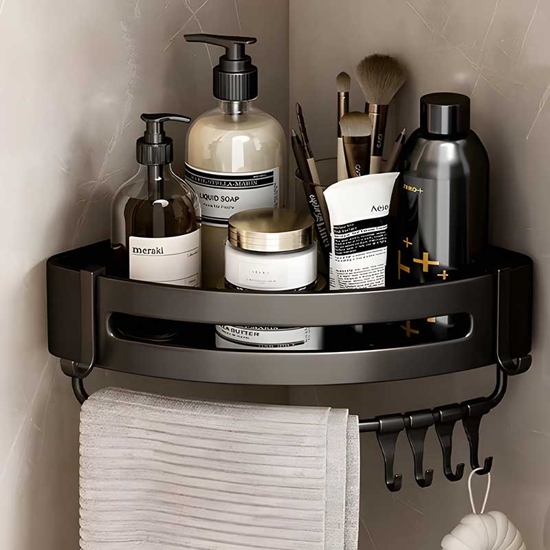 Shower Caddy. Rak sudut untuk kamar mandi yang dapat dipasang di dinding atau sudut shower. Cocok untuk menyimpan sabun, sampo, kondisioner, dan perlengkapan mandi lainnya agar lebih rapi dan mudah dijangkau.
